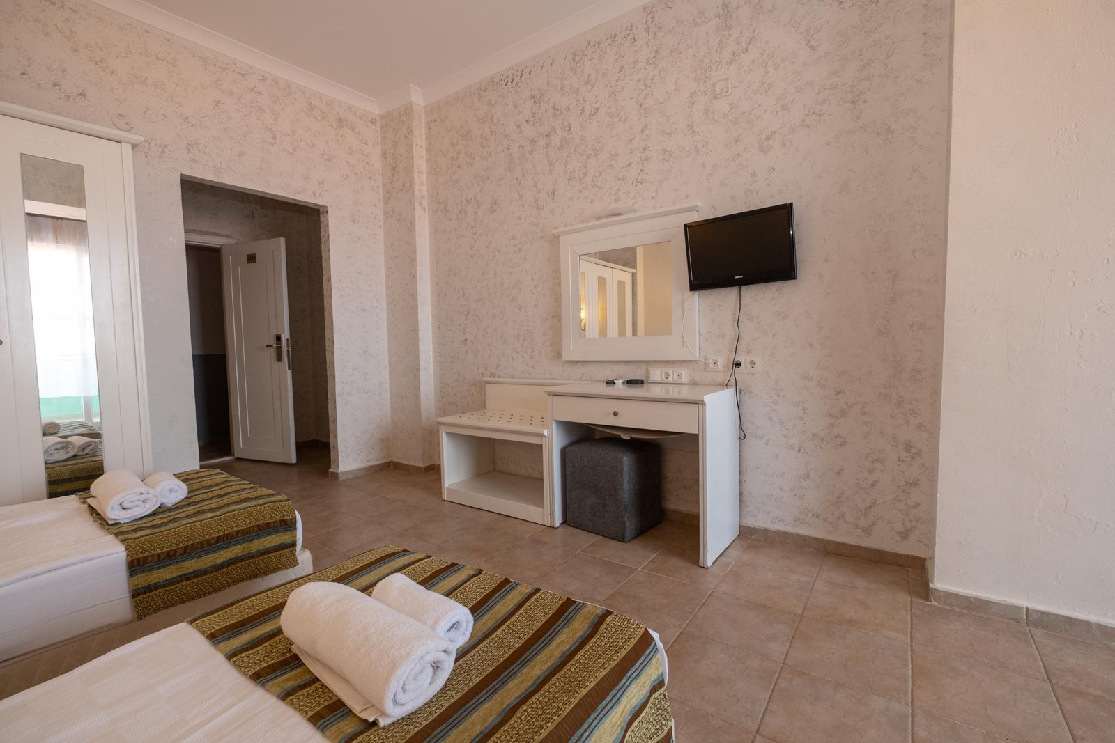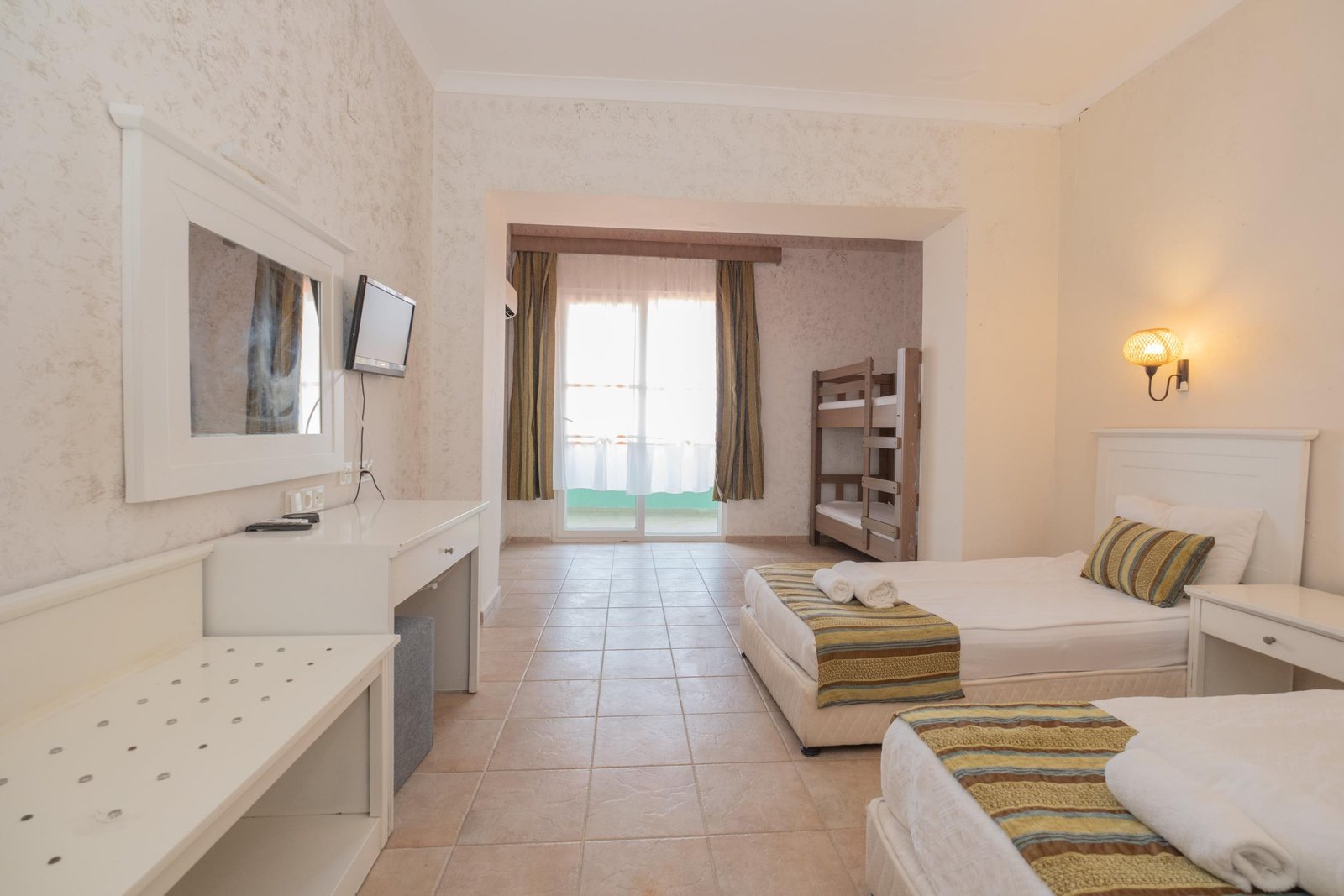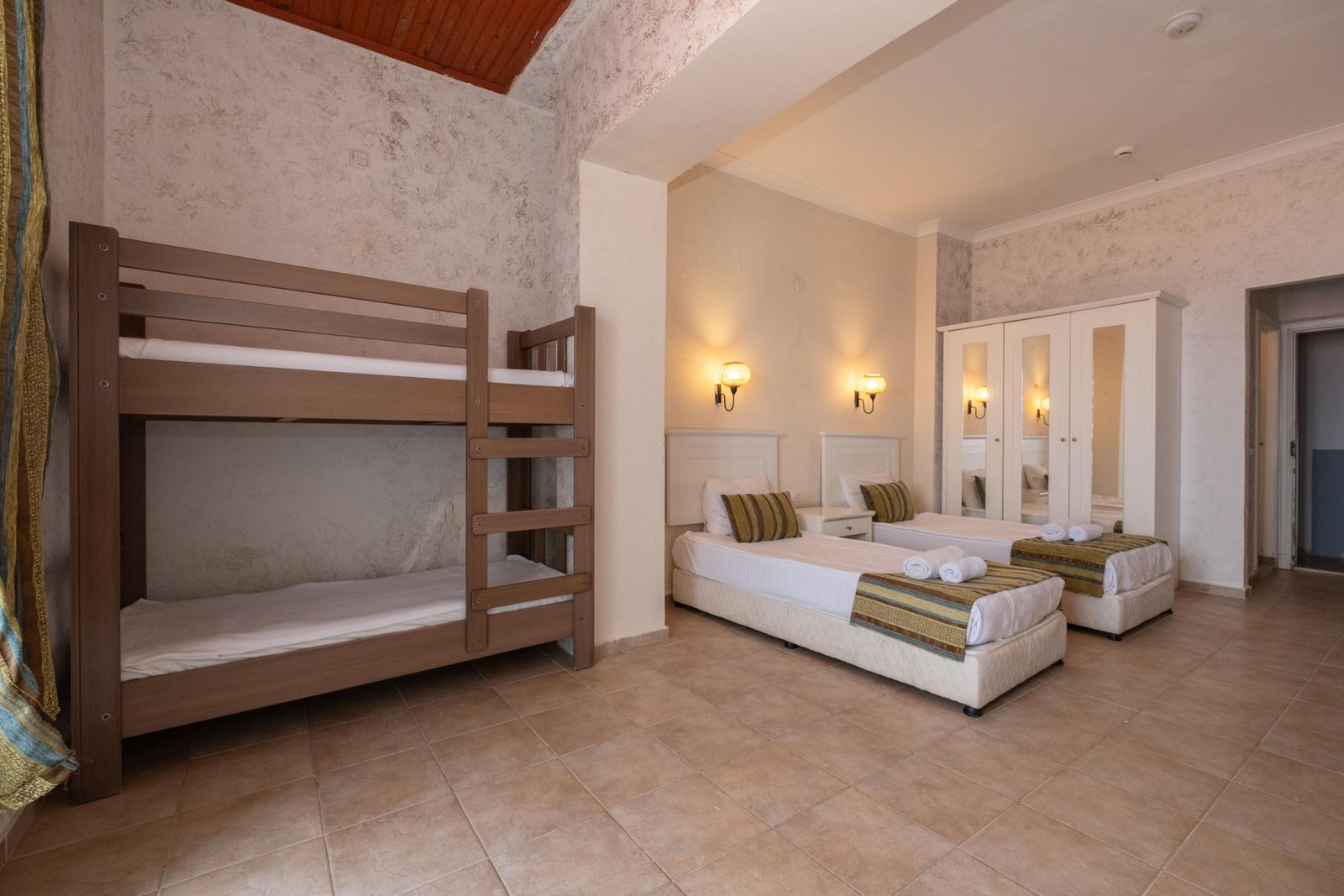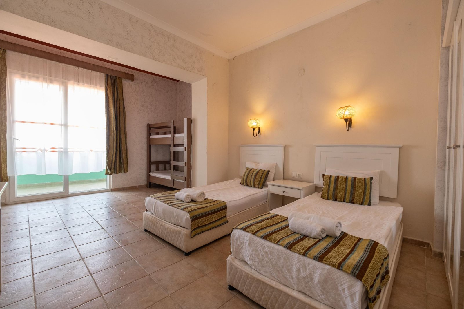 Ranzalı odalarımızda 1 büyük yatak ve 2 tek kişilik yatak bulunmaktadır